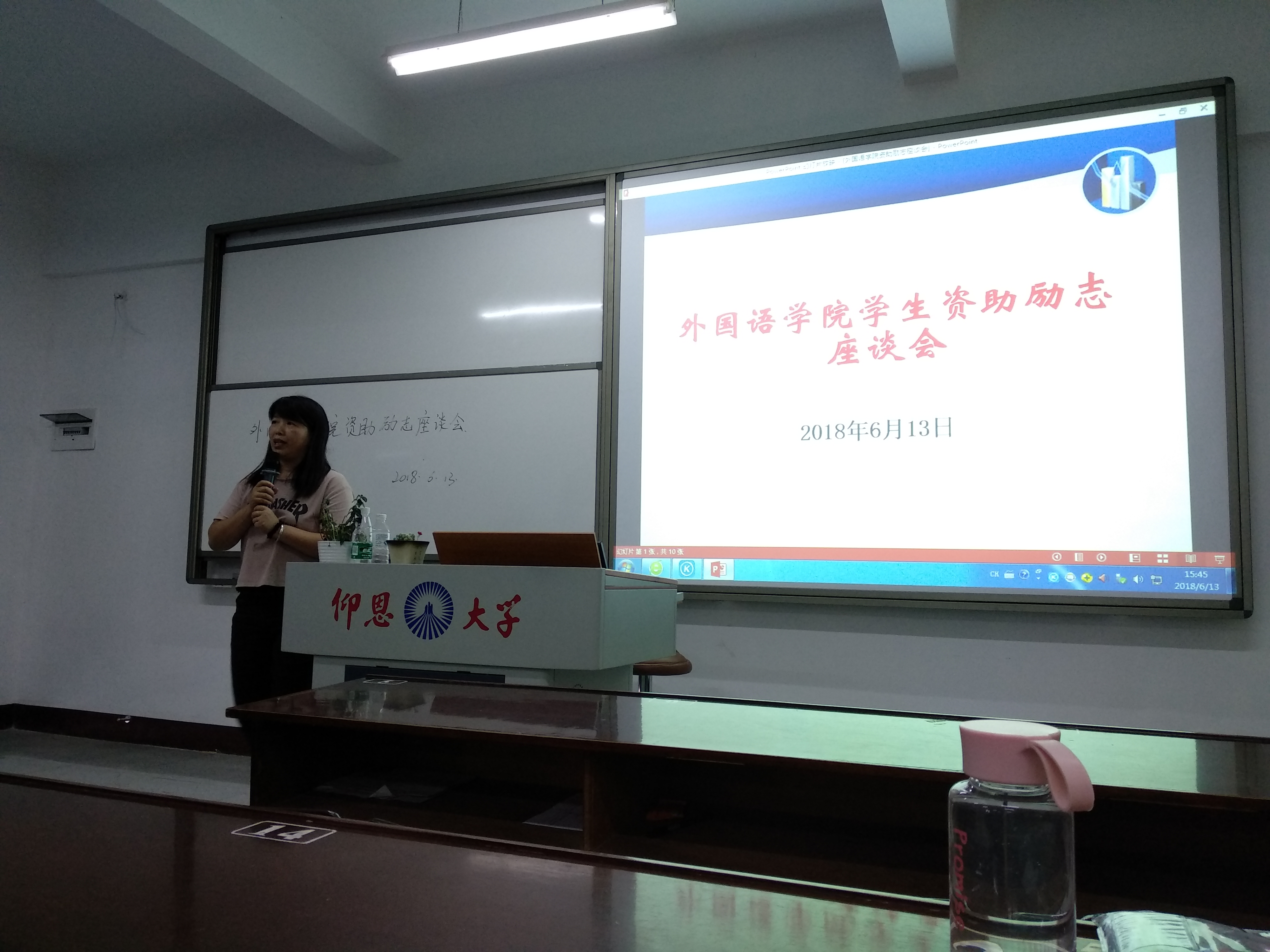 beat365中文官方网站首届资助励志座谈会于2018年6月13日下午15:30在仰恩楼D4-401召开,会议由学院辅导员向修玉老师主持,学院三个年级本学期认定的贫困学生参加了本次座谈。