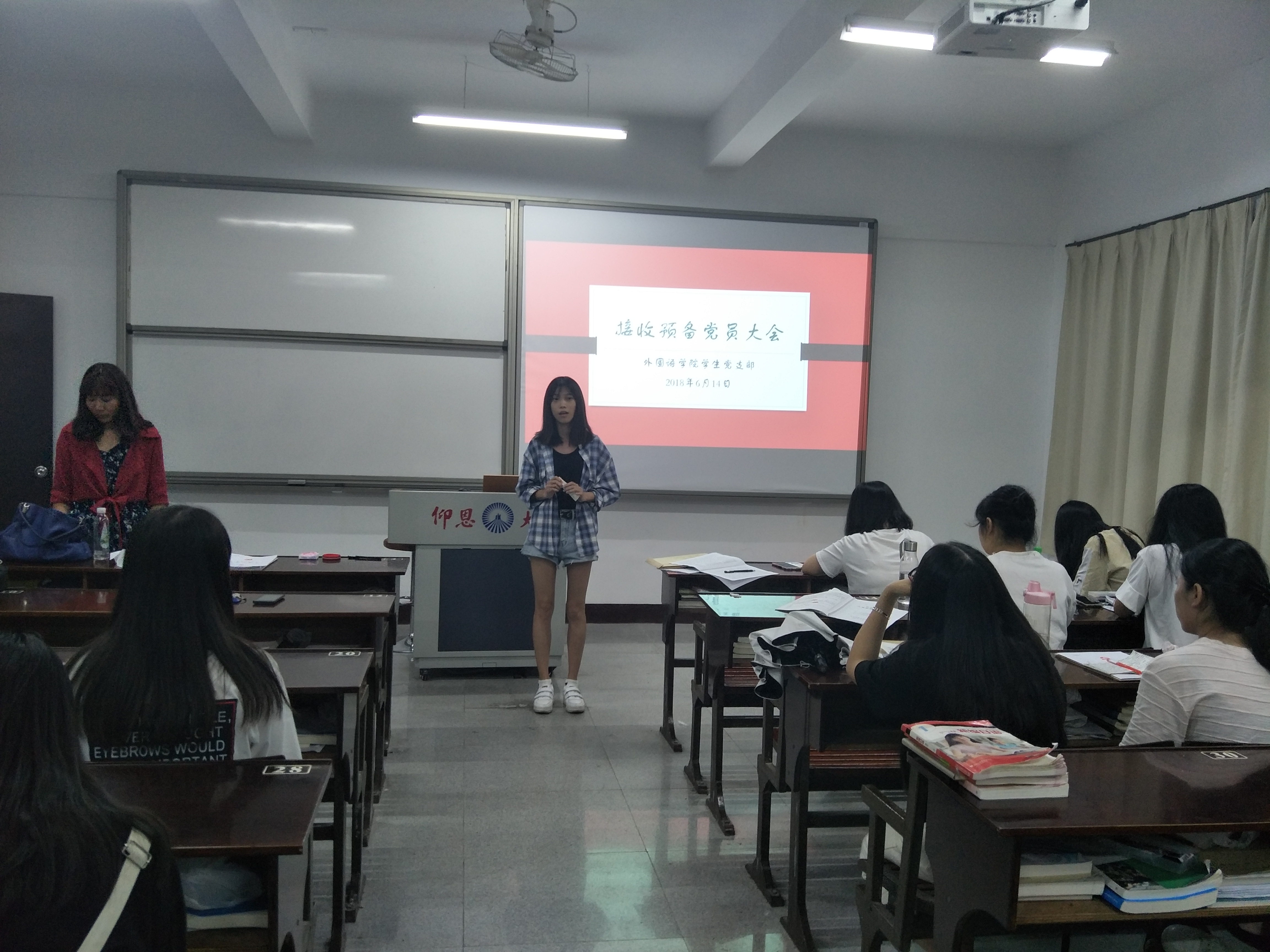 2018年6月14日19时30分,为响应党的号召、为党支部注入新鲜血液,beat365中文官方网站学生党支部于仰恩楼D3-405召开接收预备党员的支部大会,本次大会议题是讨论是否接收陈雪丹等8位同志为预备党员事宜。本次参会人员有beat365中文官方网站学生支部书记向修玉、组织委员位美娅、宣传委员蔡维、各预备党员入党联系人老师,以及beat365中文官方网站学生党支部在校全体积极分子、预备党员。会议由位美娅同志主持。