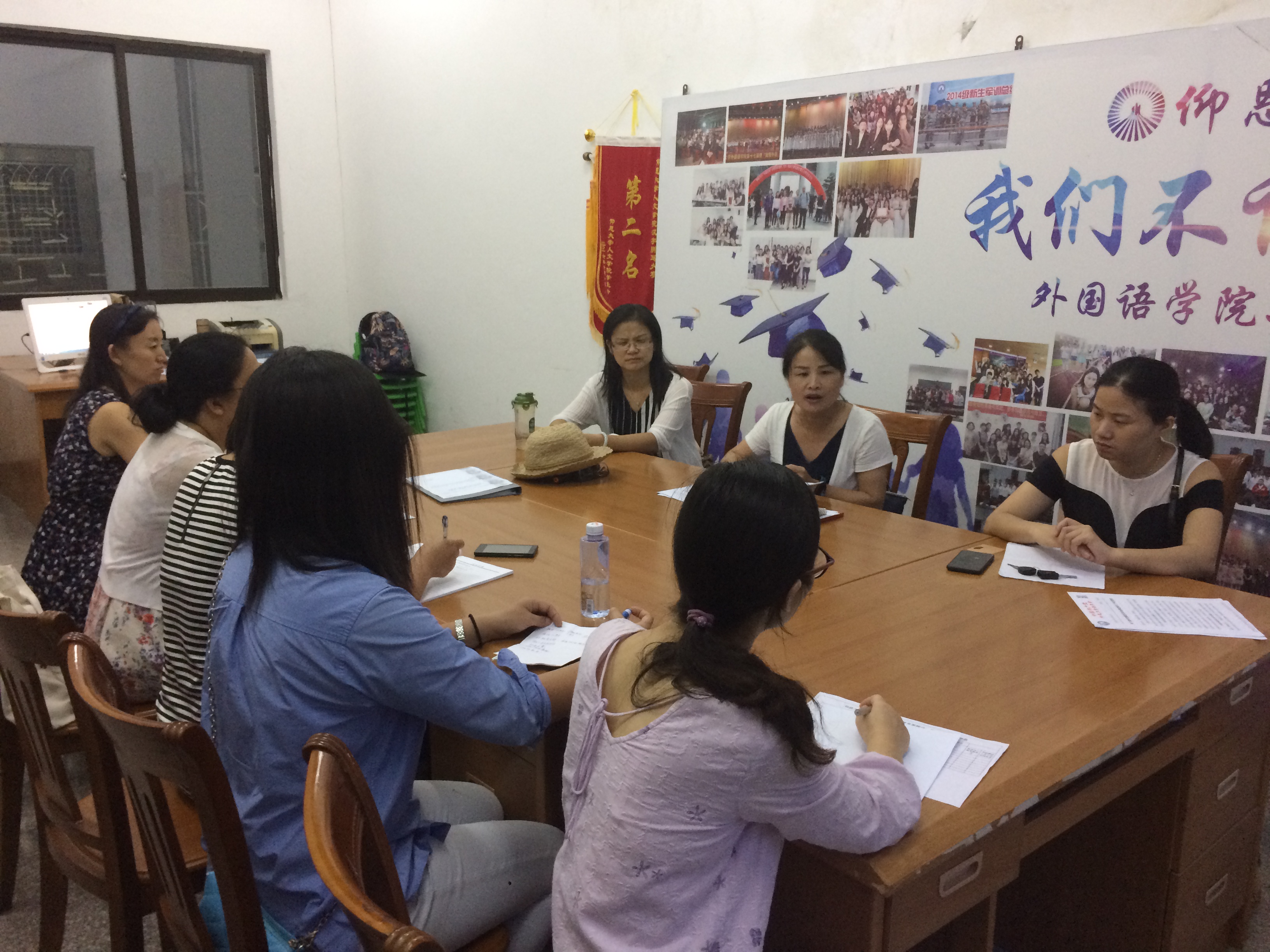 2018年9月5日,新学年伊始,beat365中文官方网站于下午6点在英语系办公室召开党总支扩大会议。会议由beat365中文官方网站党总支书记胡娟老师主持,主要根据需要的会议精神布署新学期beat365中文官方网站党团工作。参加会议的主要是beat365中文官方网站党总支、教工支部和学生支部的委员。