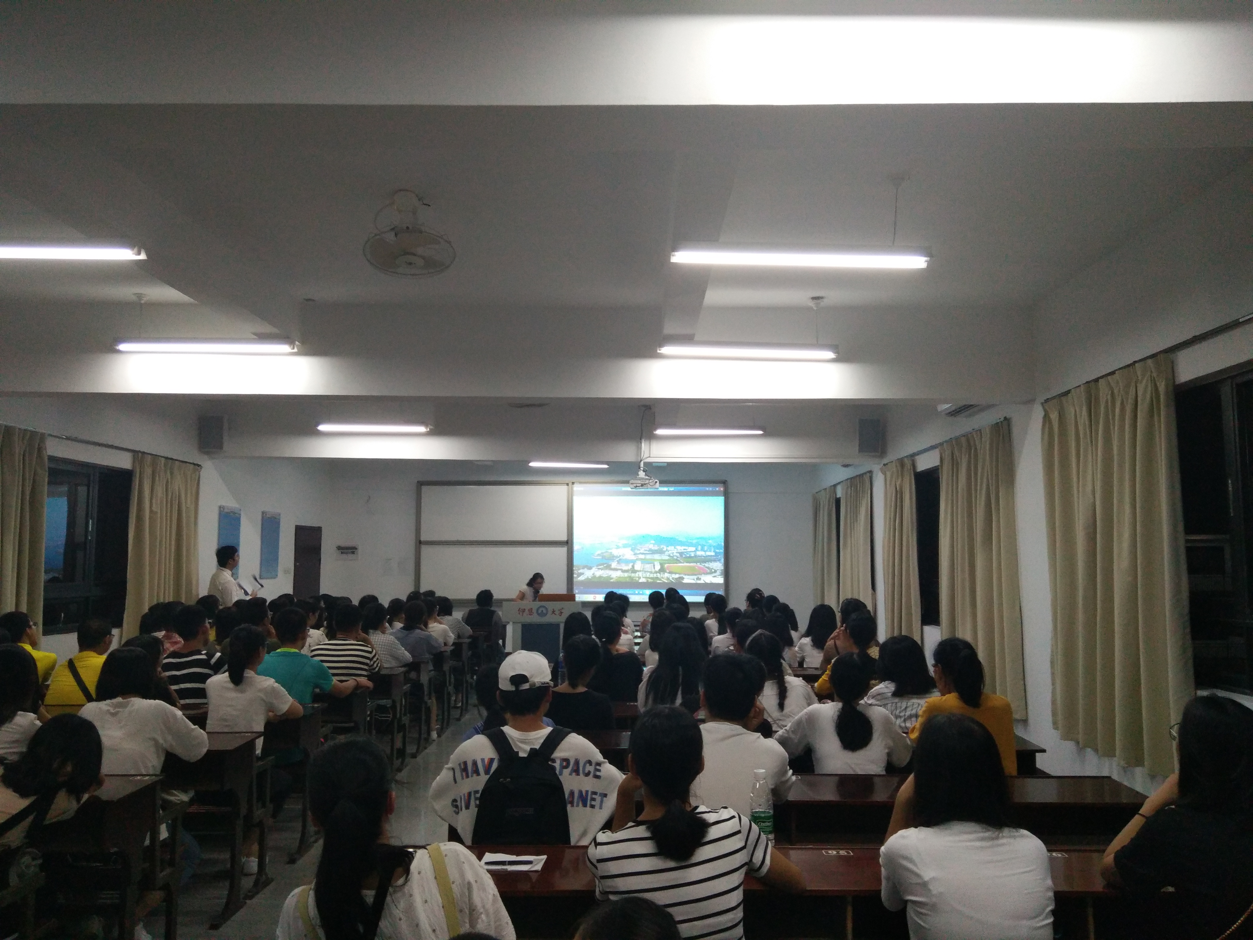 外籍教师Brown的自我介绍让新生们感受到外院浓浓的外语学习氛围。党总支书记胡娟老师向大家讲述了一段仰恩的故事,看着屏幕上放映着一帧帧属于仰恩的辉煌,在场的各位心中都不禁涌起了敬仰之情。林燕媚老师向同学们介绍了学院发展和四年专业课程。院长蔡巧娜老师依自身理解分享了新生们如何制定一份适合自己的职业生涯规划。