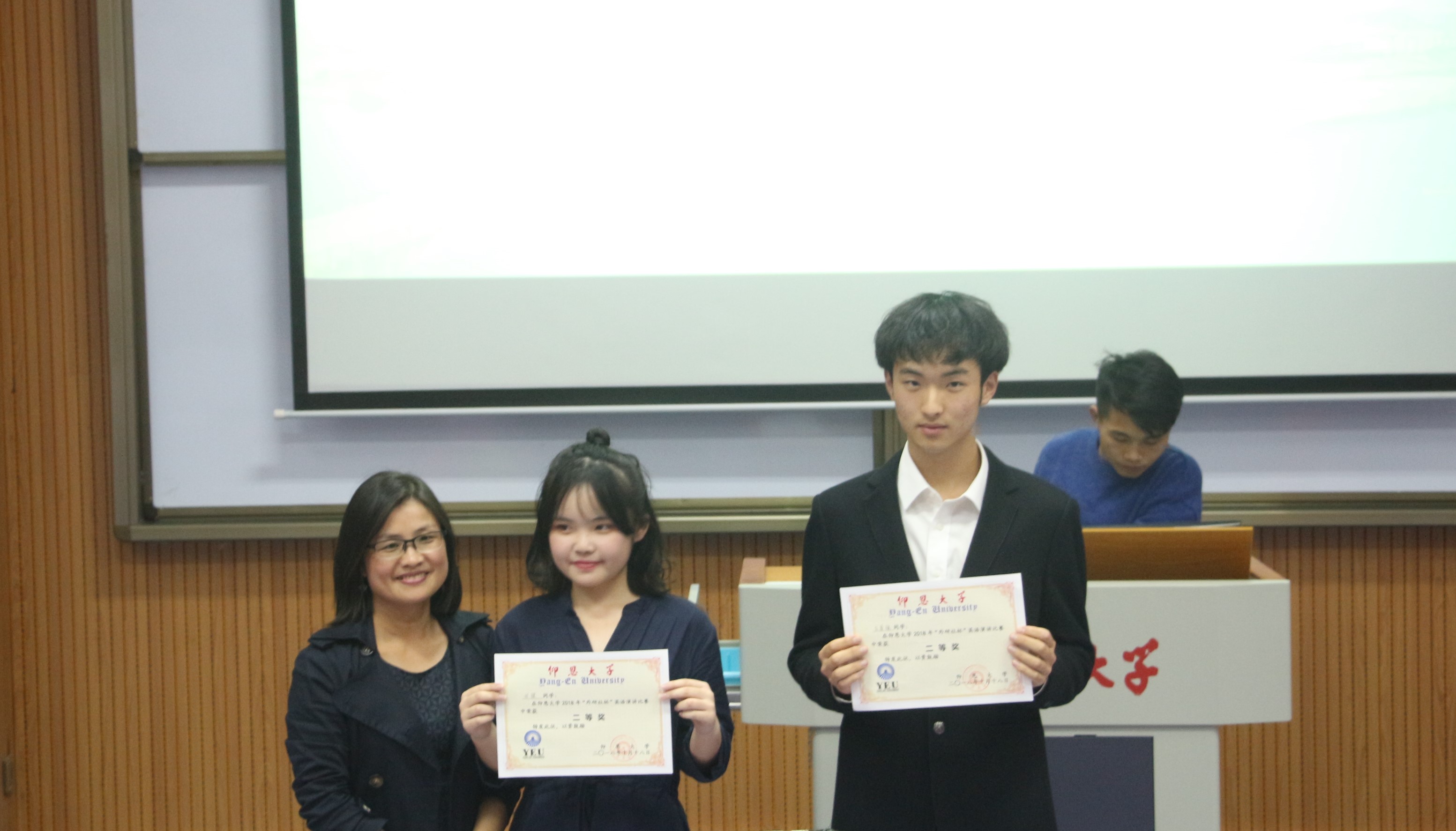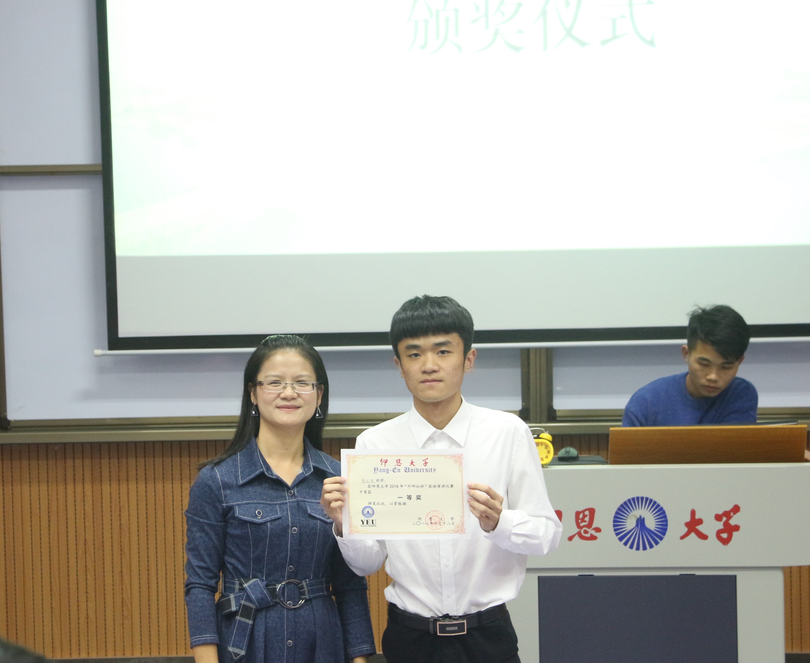 英语演讲比赛一等奖获得者 此次决赛共分为自命题演讲、即兴演讲、回答评委提问三个环节,设一等奖1名,二等奖2名,三等奖3名,优秀奖9名,并通过网络投票的形式产生最佳人气奖1名。