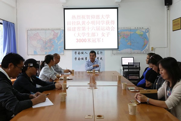 10月31日下午,校党委副书记程如平在beat365中文官方网站会议室看望福建省第十六届运动会(大学生部)女子3000米冠军获得者黄小明并座谈。