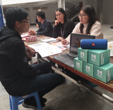 2019届毕业生参加招聘现场 beat365中文官方网站19届的毕业生们积极踊跃的参加了此次校园招聘会。招聘会现场秩序井然、人头攒动,毕业生积极向企业咨询求职应聘相关事宜。企业负责人员详尽的介绍还吸引了一些非毕业班学生前来驻足聆听,使他们提前体验就业招聘的真实环境。