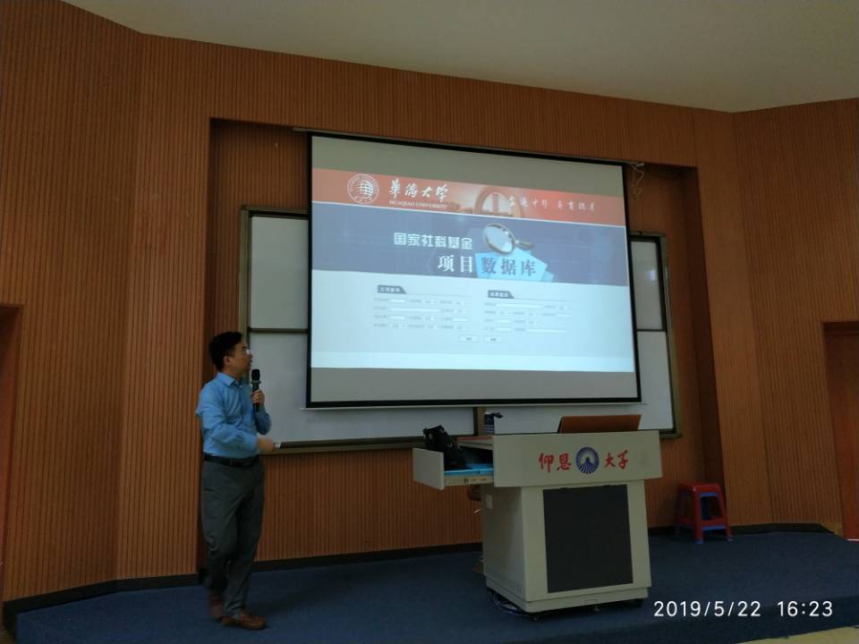 毛浩然教授 毛浩然教授首先盘点与解构做不好科研的七大借口,犀利指出选择比努力更重要:在错误的道路上,奔跑也没有用,结合自己工作和科研的独家方案和实例示范传授时间管理和经理管理的独家秘笈。其次以项目驱动为引领,通过快速入门一个新学科领域的六部曲、跨学科项目驱动快速破题的思路和范例、国家社科项目数据库的高效利用和分类选题分享,教导青年老师和学子要接着做、跟着做、仿着做、反着做、领着做,进行逐层逐级的提升,走出自己的学术之路,收获丰硕的学术成果。他继而教导年轻学者学子把问题作为导向,把好入口关,在进行科学研究时读精品、读原典。接着他从论文建构角度指出论文向下多层级分类,向上三维度归类,同时也提出在大学英语教学中做到“三不”——思维不缺席、育人不含糊、方法不守旧。最后利用生动的三维数据图和丰富的普通文本和学术话语模式的示例展示学术语言的风格与特点。
