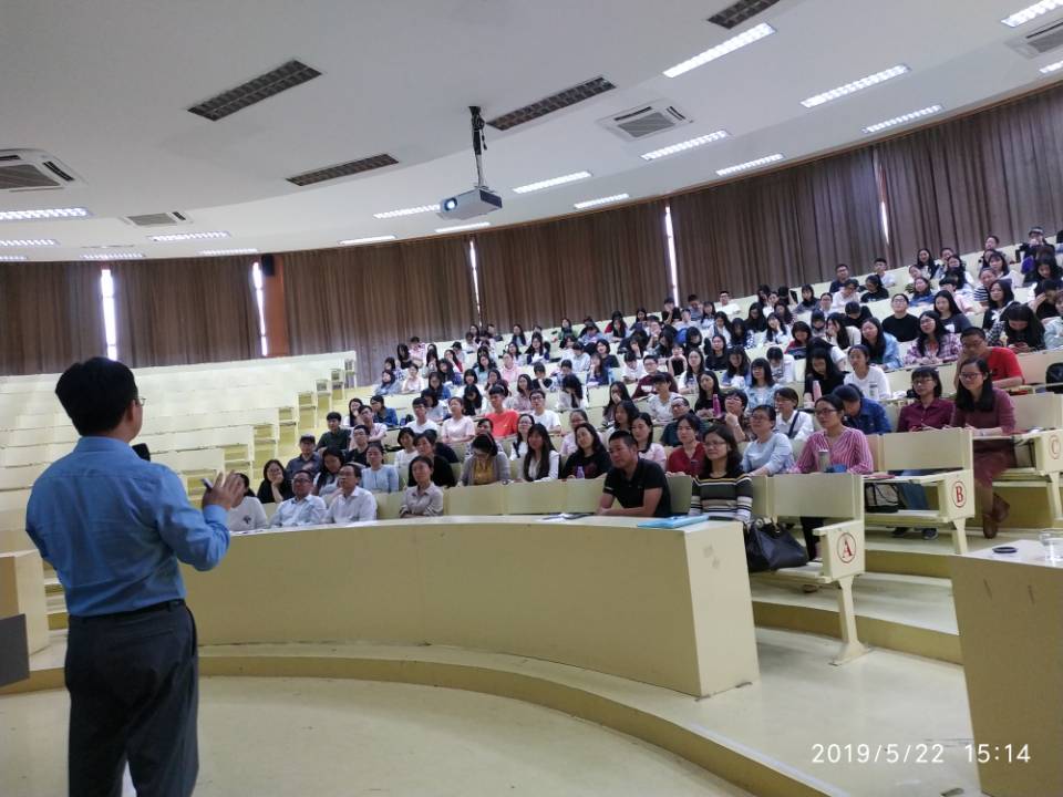 为了提高师生科研论文写作水平、提升教师科研项目层级,助推学科和教师教学科研团队建设与发展,2019年5月22日下午2点30分, 在新区和昌楼惟勤讲堂,beat365中文官方网站、科研管理部联合举办了仰恩大学百科系列学术讲座之《问题导向、话题点穴、修辞出场——科研思维与学术话语的脱胎换骨之道》,主讲嘉宾为英语语言文学博士、华侨大学beat365中文官方网站院长、博士生导师毛浩然教授。讲座由beat365中文官方网站院长蔡巧娜副教授主持,beat365中文官方网站党总支副书记刘冬利老师、教学副院长林燕媚老师以及beat365中文官方网站全体师生和其他院系师生参加了讲座。