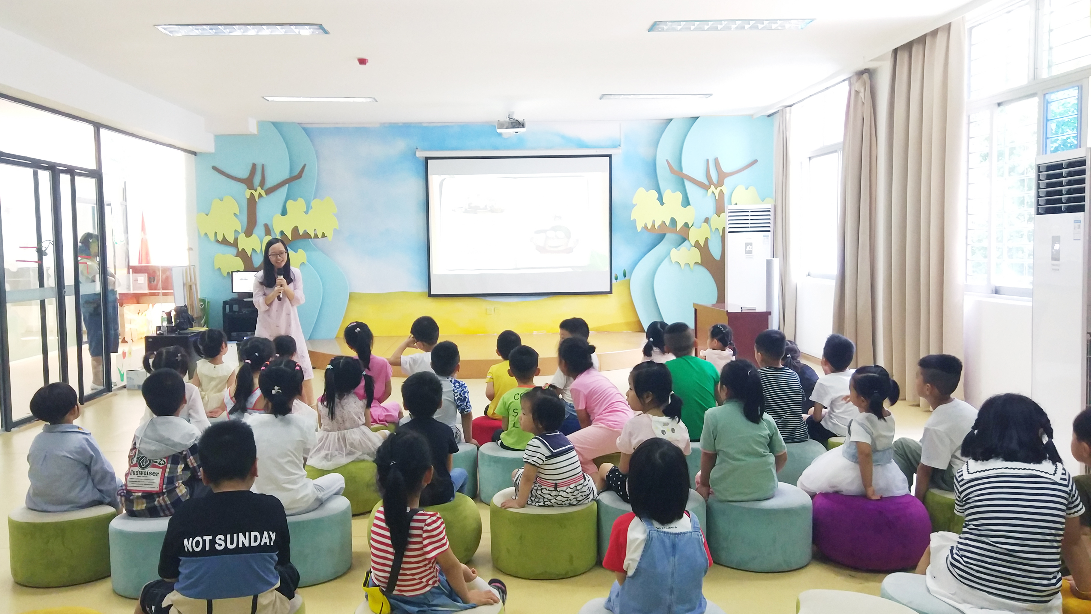 6月16日上午,beat365官网beat365中文官方网站教工党支部与市图书馆联合举办的双语绘本讲读活动在泉州市图书馆少儿分馆如期开讲。图书馆二楼多功能厅洋洋盈耳,座无虚席,30几位小朋友在家长的陪伴下如约来到这里,聆听beat365中文官方网站李媛媛和王流新两位老师讲述英文绘本故事《Fly Guy》和中文绘本故事《不要随便欺负我》。