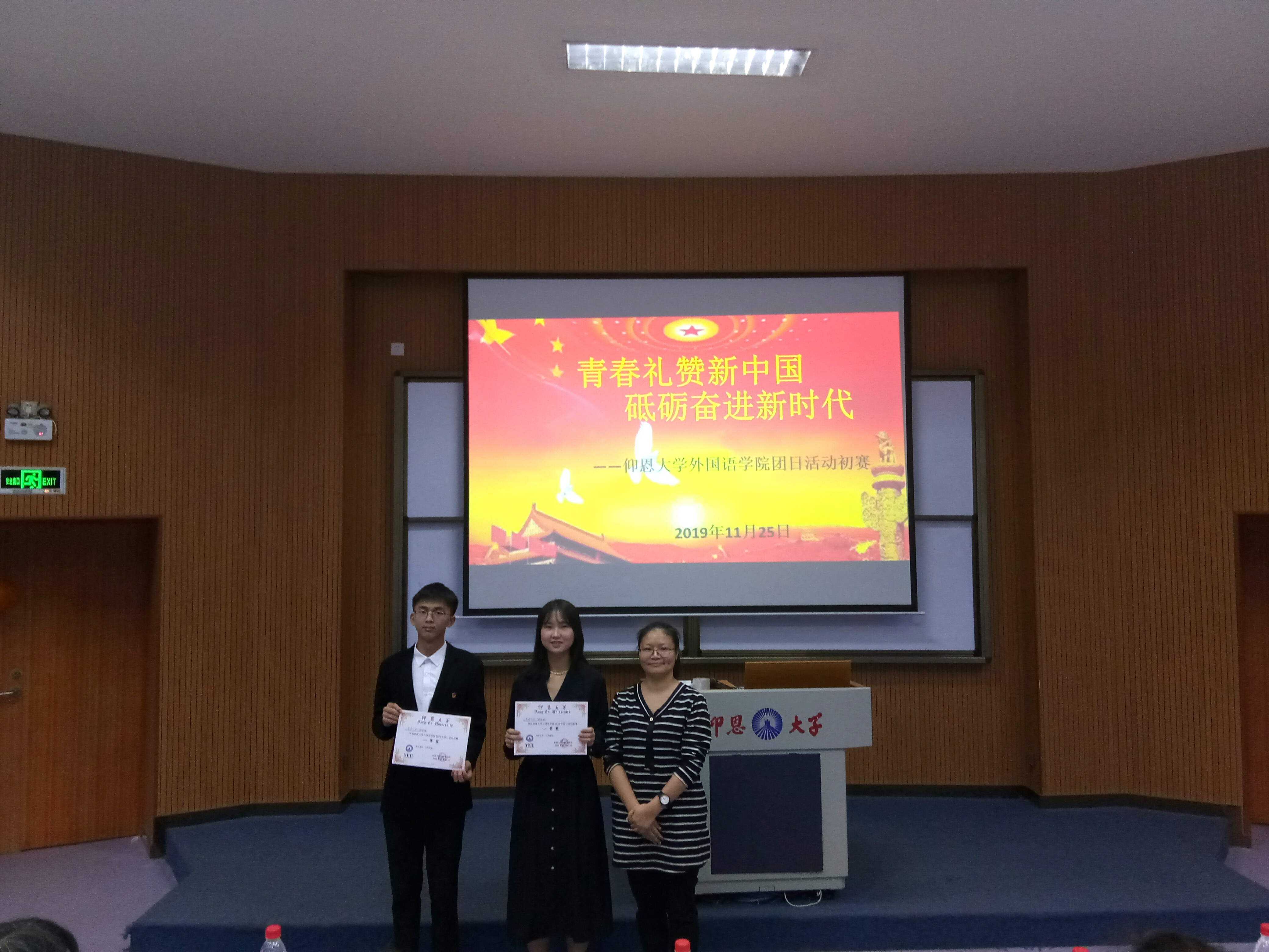 beat365中文官方网站于2019年11月25日下午16:00在和昌博雅讲堂举办以“青春礼赞新中国,砥砺奋进新时代”为主题的团日活动初赛,本次比赛共有九个班级团支部参加,beat365中文官方网站副院长林燕媚、beat365中文官方网站党总支组织委员、学生党支部书记兼团总支书记向修玉、beat365中文官方网站党总支宣传委员张思思、beat365中文官方网站学生党支部组织委员位美娅、辅导员裴爱瑶等出席此次活动并担任评委。此外,学院全体班主任和班级同学参加了此次团日活动。