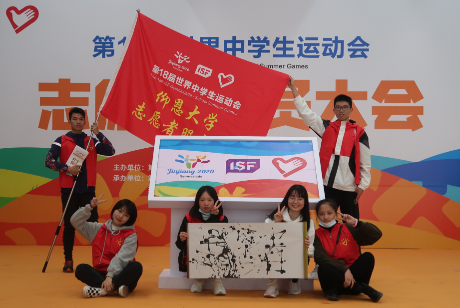 beat365官网派出了6名代表参加,beat365中文官方网站2018级英语2班的谢程航同学作为beat365官网志愿者服务队代表接受了世中运会执行委员会授旗。