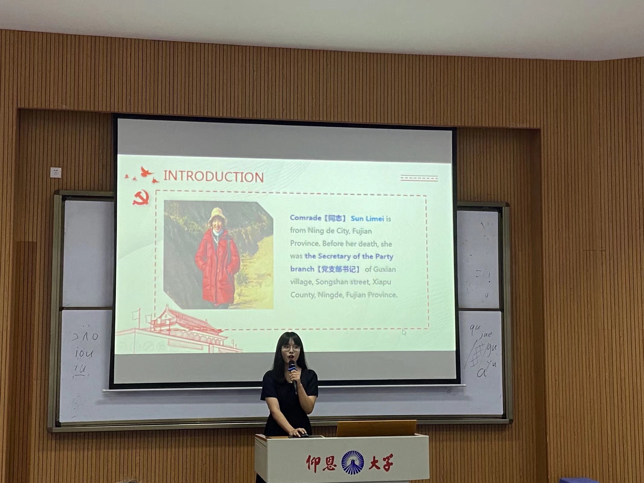 活动现场 在比赛现场,各位选手以回顾党史为主线;以坚持和平发展道路,推动构建人类命运共同体为思想指导;通过外语从不同的视角讲中国故事、党建故事,回顾中国发展,展现中国力量。她们各展风采,声情并茂,或赞颂时代先锋,或介绍中国传统文化,或分享中国地方特色,讲述了一个又一个令人难忘的中国故事。选手全部展示完毕后,评委代表胡娟老师进行了总结发言,她就选手的表现进行点评,肯定了选手的文化自信以及爱国情怀,同时指出选手们演讲存在的问题并提出了相应的建议。最终选拔赛结果如下:
