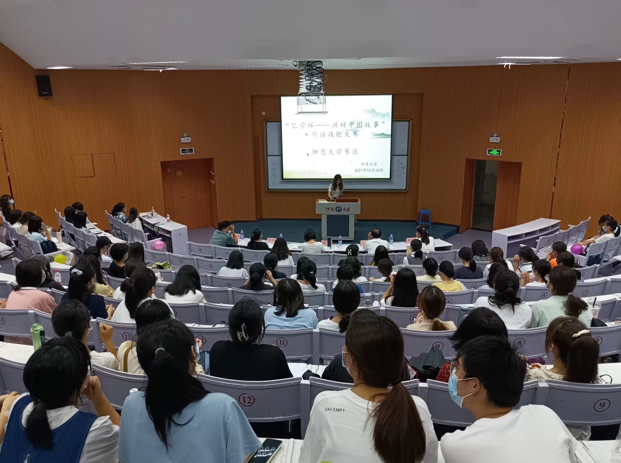 10月14日晚,beat365中文官方网站团委组织在和昌楼博雅讲堂举办了“亿学杯—讲好中国故事”外语技能大赛仰恩大学赛区选拔赛。此次比赛beat365中文官方网站院长胡娟、党总支书记却正强、副院长林燕媚、教工支部书记蔡维以及骨干教师常文彩副教授出席并担任评委。