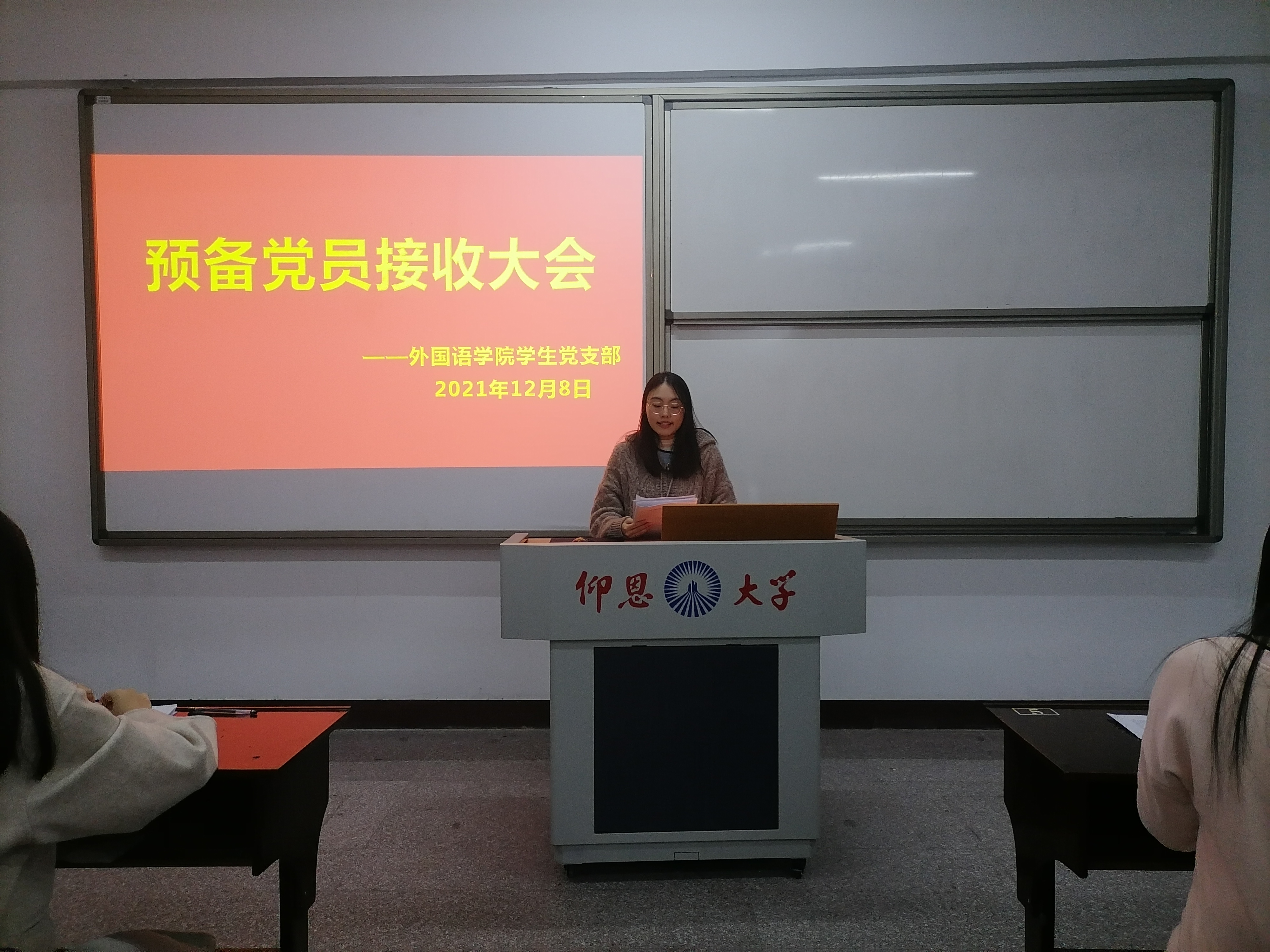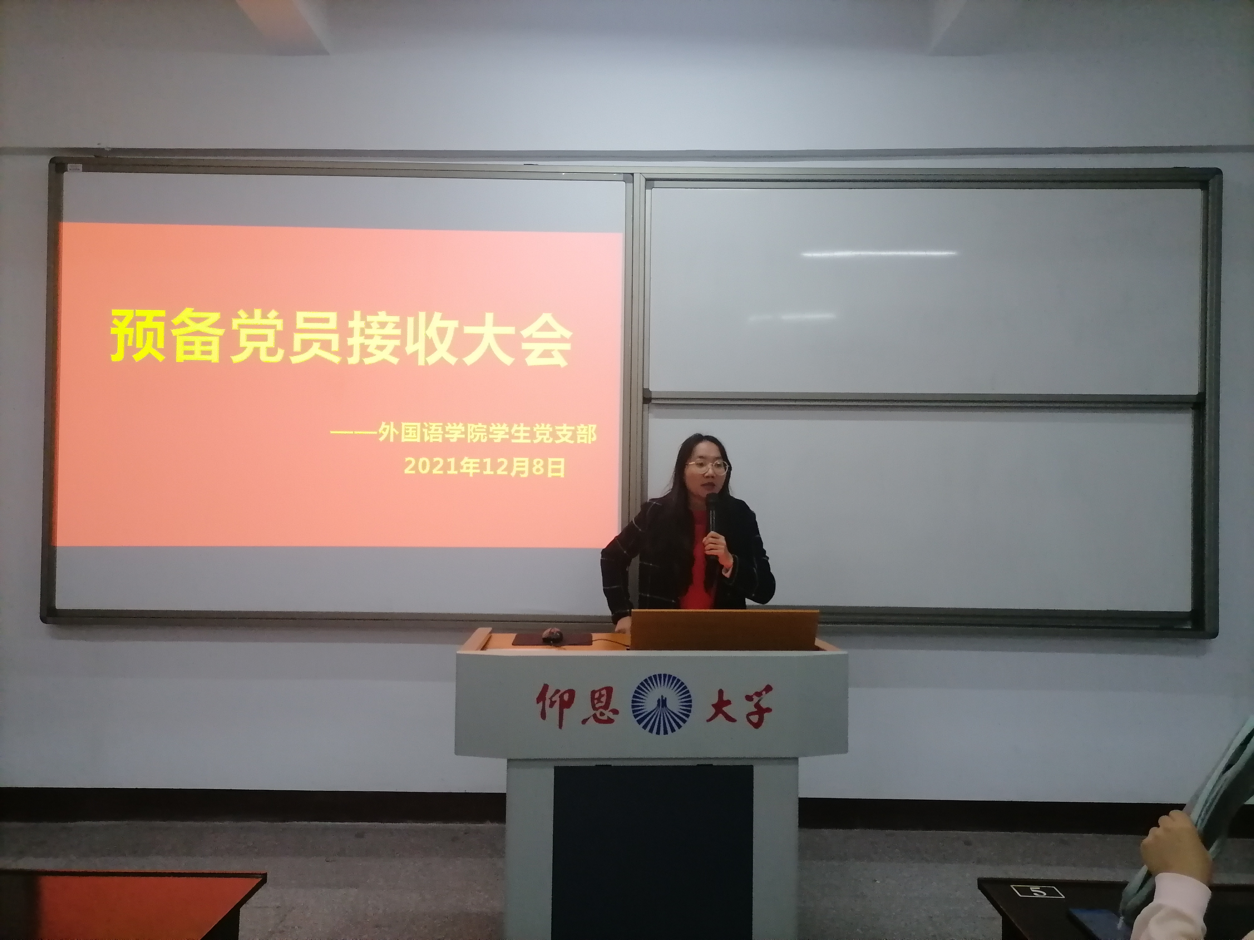 2021年12月8日beat365中文官方网站学生党支部在普照教学楼309教室召开接收预备党员大会。本次会议由学生党支部书记许淑琴主持,支部全体师生党员和积极分子参加本次大会。