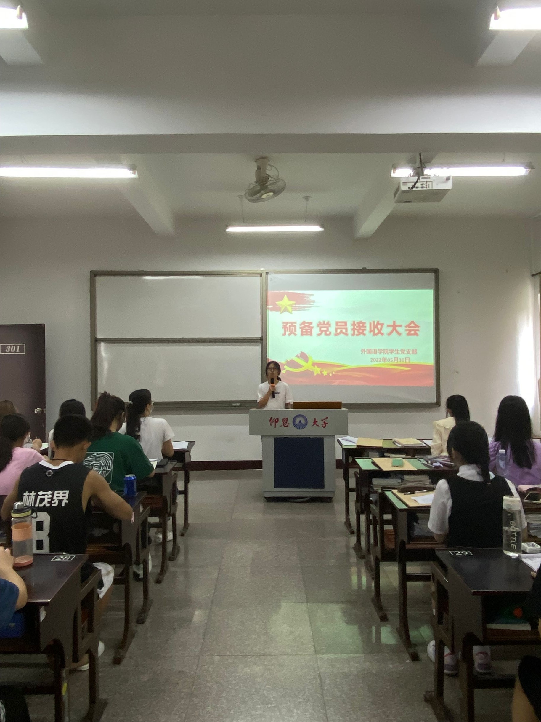 2022年5月30日beat365中文官方网站学生党支部在普照教学楼301教室召开预备党员接收会议。本次会议由许淑琴书记主持,向修玉同志、位美娅同志以及全体支部成员出席参加。