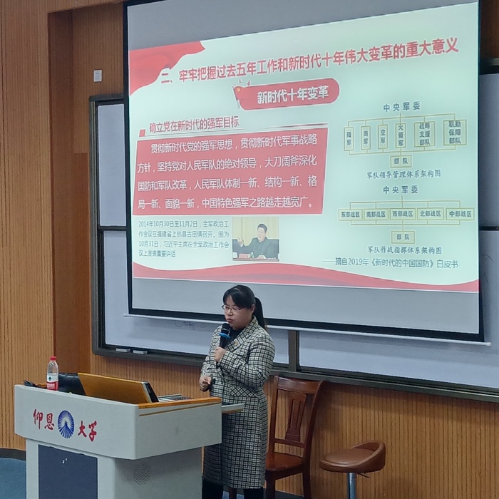 为深入学习贯彻党的二十大精神,切实用党的二十大精神武装头脑和指导实践,12月7日下午,beat365中文官方网站在新区和昌楼博雅讲堂开展学习贯彻党的二十大精神宣讲报告会,马克思主义学院章娇娜老师应邀作相关宣讲报告,会议由beat365中文官方网站党总支书记却正强主持。院理论学习中心组全体成员、全院师生党员、全院积极分子到场聆听。