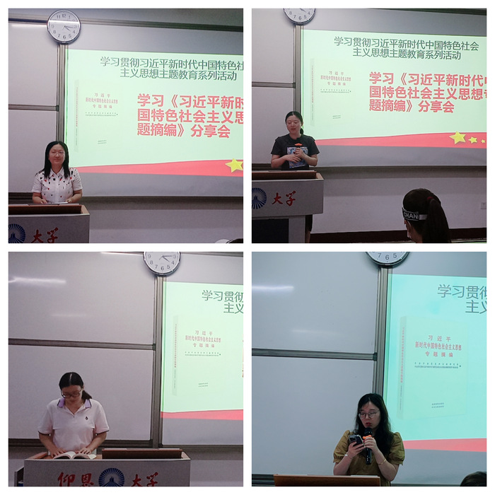第一党小组的黄红卫同志从文化层面出发,解释了如何讲好中国故事以及讲好中国故事的必要性。第二党小组的林晓芳同志就教师自身角色结合英语教学工作,提出了激发学生的学习兴趣和创新精神的可行性建议;建议教师党员们以培养能服务国家发展战略、满足社会需求的新时代人才为育人目标。其他各组党员同志也都表达了自己对《摘编》内容学习的不同体会。