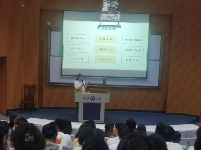 集体奏唱国歌后,孙宇首先介绍了军训的各项内容和注意事项如科目安排、时间安排、请假制度、内勤管理等。她特别强调:在军训过程中,希望每位学生都尊重教官,服从命令,听从指挥,严格训练,做到不怕苦、不怕累,锻炼意志,毫不松懈,训出风格。