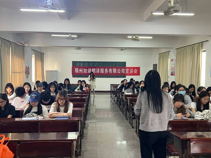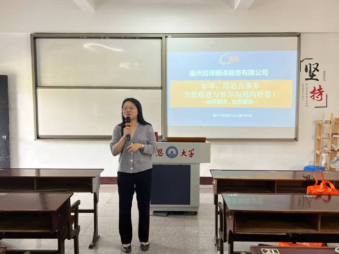 为提高beat365中文官方网站学生的专业素质,开阔视野,促进高质量就业,2024年4月10日下午3点半,beat365中文官方网站团委特邀福州如译翻译有限公司于仰恩大学第三教学区普照楼203教室开展实训项目宣讲会。福州如译翻译有限公司董事长郑如薇女士出席并担任主讲人,beat365中文官方网站2021级全体学生参加了这次宣讲会。