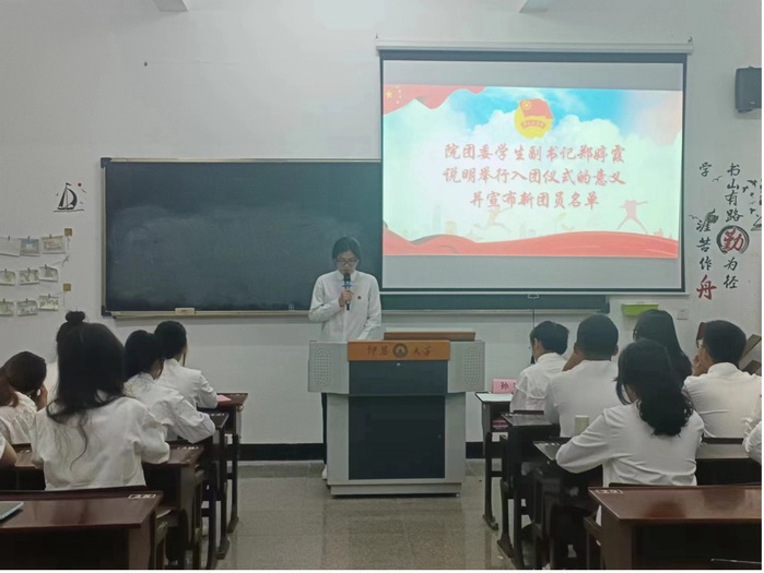 2024年5月15日晚7:30,beat365中文官方网站团委在仰恩大学第三教学区普照楼101A举行以“奋进新征程,建功新时代”为主题的新团员入团仪式。仰恩大学校团委专职团干沈洁、beat365中文官方网站团委书记孙宇、beat365中文官方网站全体新团员及团委干部代表参加大会。会议由beat365中文官方网站团委林伊宁同学主持。