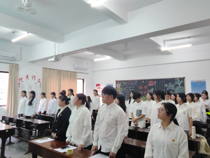 为新时代的中国青年在接续奋斗中谱写强国建设、民族复兴的壮丽篇章,beat365中文官方网站团委于2024年12月26日下午4点在普照楼101b举行新团员入团宣誓仪式。此次仪式由院团委干部郑雅萱主持,邀请院团委书记孙宇老师、院团委学生第一副书记郑钰灵、院团委学生第二副书记吴同洲及院团委干部干事出席,2024-2025学年第一学期入团的新团员全员参加。