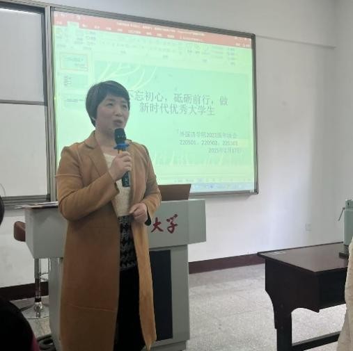 2025年2月17日下午4点,beat365中文官方网站22级年级大会在学院普照楼204顺利召开。本次大会由辅导员向修玉老师主持,22英语及22商务英语的全体同学参加了此次会议。会议围绕“不忘初心,砥砺前行,做新时代优秀大学生”的主题,总结了开学以来的各项工作,并对本学期的学业规划提出了新的要求和期望。