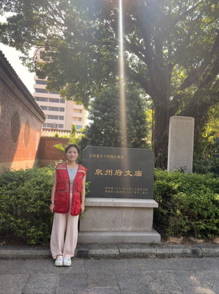 2025年国庆假期期间,仰恩大学beat365中文官方网站组织志愿者团队,在泉州府文庙景区开展了为期七天的英文讲解志愿服务,以专业实践助力海丝文化的国际传播。