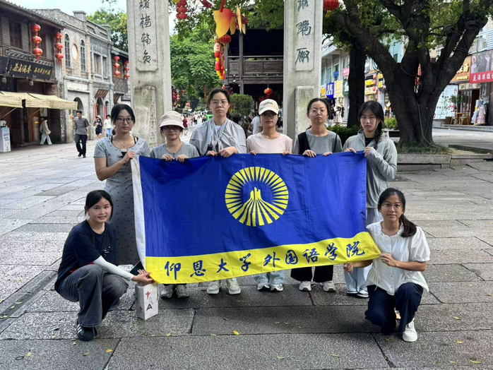 7月6日至9日,实践队走进三坊七巷历史文化街区,化身“文化使者”,面向中外游客开展双语讲解服务。队员们手持精心准备的讲解手册,围绕林觉民故居“一片冰心在玉壶”的家国情怀、严复晚年著述的思想印记等历史片段,生动讲述坊巷背后的人文故事。讲解内容兼具学术性与趣味性,语言表达流畅自然,赢得游客广泛好评,充分展现外语专业学子讲好中国故事的能力与自信。